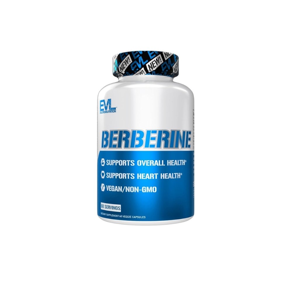 • Promotes heart health The product comes in a clean white container with blue accents featuring the EVL (Evlution Nutrition) branding. Each serving provides a clinically-studied dose of Berberine, a natural compound traditionally used to support metabolic and cardiovascular health. The supplement is manufactured in veggie capsules, making it suitable for those following a plant-based lifestyle. The non-GMO formulation ensures high quality and purity standards.